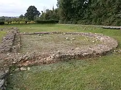 The visible remnants, reaching up to 12 metres in height, belong to three rooms situated in the southwest of the building: a tepidarium, an unctorium, and a sudatorium. Additionally, the base of several other walls and the traces of trenches dug to uncover their foundations enable the reconstruction of the layout of the complex.[AG 1] The baths of Alauna, together with the ancient theatre of Lillebonne, are the sole Roman-era structures in Normandy that have been preserved in elevation.[27]