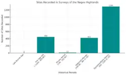 - ^ The exact figure is uncertain and controversial. For instance, Michael cites 101 sites in the Beersheba area as definitely inhabited during the Early Islamic period, compared to 47 in the Roman period and 321 during the Byzantine era. However, given that many settlements traditionally classified as "Byzantine" were also inhabited during the early Islamic period,[193][194][195] she suggests that their number was "probably (much) higher than registered".[196]
