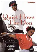 And Quiet Flows the Don (Russian: Тихий Дон, translit. Tikhiy Don) is a three-part Soviet epic film directed by Sergei Gerasimov based on the novel of the same title by Mikhail Sholokhov.[2] The first two parts of the film were released in October 1957 and the final third part in 1958. The film tells the story of Russia's involvement in the World War I, the October Revolution, the Russian Civil War, the fate of ordinary people, the crumbling ideals of the Don Cossacks and the personal tragedy of the protagonist, Grigori Melekhov (anglicised Gregory Melehoff). The protagonist is described by Gerasimov as in fact "a man without a road, doomed by history."[3]