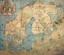 - ^ Its full Latin title is Lapponise, Bothniae Cajaniseque regni Suecie provinciarum septentrionalium nova delineatio sculpta anno domini 1611.[1] An approximate English translation is: "A new outline of Lapland, Bothnia [i.e., Ostrobothnia, West Bothnia and North Bothnia] and Kainuu, the northern provinces of the kingdom of Sweden, engraved in the year of our Lord 1611."