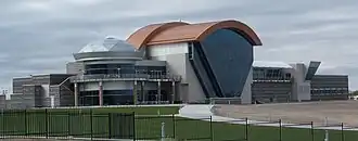 The museum, designed by the architectural firm Gerald A. Martin, Ltd., is a partial two-story high bay building. The high bay, which is the main gallery, is 80 feet tall with a tensile fabric roof. The interior ceiling is 75 feet high.[3]