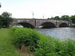 Anderson Memorial Bridge (commonly but incorrectly called Larz Anderson Bridge) connects Allston, a neighborhood of Boston, and Cambridge. The bridge stands on the site of the Great Bridge built in 1662, the first structure to span the Charles River. It brings Boston traffic (from North Harvard Street) into Harvard Square (via JFK Street) and was finished in 1915.[1][2]