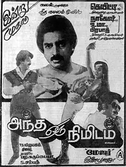 Andha Oru Nimidam (transl. That One Minute) is a 1985 Tamil-language thriller film directed and written by Major Sundarrajan. The film stars Kamal Haasan and Urvashi while Sundarrajan, Jayamalini, Thengai Srinivasan and Pandari Bai play supporting roles. It was released on 31 May 1985.[1]