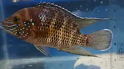 {{cite journal}}: CS1 maint: multiple names: authors list (link) - ^ a b Wijkmark, N., Kullander, S.O. & Barriga S., R.E. (2012): Andinoacara blombergi, a new species from the río Esmeraldas basin in Ecuador and a review of A. rivulatus (Teleostei: Cichlidae). Ichthyological Exploration of Freshwaters, 23 (2): 117-137.