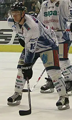 András Benk (born September 3, 1987) is a Hungarian professional ice hockey winger who plays for Újpesti TE in the MOL Liga. He joined after a 9-year tenure with Alba Volán Székesfehérvár in the Austrian Hockey League.[1]