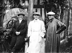 ![]() On the right with Rolf de Maré, Rudolph Valentino and René André Daven outside the Concert-Damia, Paris, 1925. | |