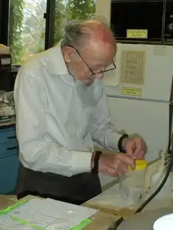 André Jagendorf graduated from Cornell University, where he was strongly influenced by Loren Petry, who taught General Botany. He earned his PhD in 1951 at Yale University under David Bonner.[7][8] André then went to UCLA, where he was awarded a Merck Postdoctoral fellowship and spent what he called "the happiest years of my life" working with Sam Wildman. Jagendorf became an assistant professor at Johns Hopkins University in 1953, as associate professor in 1958, and a full professor in 1966. Jagendorf then returned to Cornell University as professor of plant physiology, and in 1981 became the Liberty Hyde Baily Professor. Since 1997 Jagendorf has been the Liberty Hyde Bailey Professor Emeritus in the Department of Plant Biology and was actively doing research and mentoring young scientists until days before his death.[9][10][11]