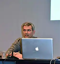 André Lepecki (born July 15, 1965) is a writer and curator working mainly on performance studies, choreography and dramaturgy. He is a Professor and the chair of the Department of Performance Studies at Tisch School of the Arts at New York University.[1] He has published widely and edited several anthologies. He has also curated numerous festivals and exhibitions including the award-winning re-staging of Allan Kaprow’s 18 Happenings in 6 Parts.[2] In 2010 he co-curated the Archive on Dance and Visual Arts since the 1960s for the exhibition Move: Choreographing You at the Hayward Gallery, London.[3] He is the author of the books Exhausting Dance (2006)[4] and Singularities: Dance in the Age of Performance (2016)[5] and the editor of Dance (2013), Planes of Composition (with Jenn Joy, 2009),[6] The Senses in Performance (with Sally Banes, 2007),[7] and Of the Presence of the Body (2004).[8]