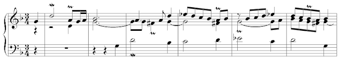 Many of the pieces are notable for their consistent employment of imitative counterpoint: for example, the Fugue grave of the third mass is fully imitative, a strict four-voice fugue, and even the passacaglia begins with an imitative passage. Other notable pieces include Gloria: Tu solus altissimus from the Messe du Sixième ton, which is a Cromorne-Cornet dialogue alternating between 3/4 and common time, and Autre Kyrie from Messe du Première ton, which is a five-voice piece. Willi Apel describes the overall style thus: "In their melodious, dance-like character these pieces follow Lebègue; others of a more organ-like and ecclesiastic approach are similar to Nivers'."[8] An interesting feature, indicative of Raison's meticulous attention to detail,[4] is the early use of double dotting in French music of the period.