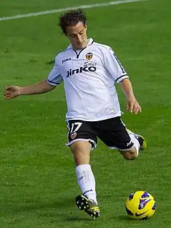 On 28 May 2012, Guardado signed a four-year contract with Valencia CF.[38][39] He made his debut on 19 August, playing 66 minutes in a 1–1 away draw against Real Madrid;[40] two days later, following his five-year residence in the country, he attained his Spanish citizenship.[41] His debut appearance in the UEFA Champions League took place on 12 September, in a 2–1 group stage loss at eventual winners Bayern Munich.[42] During his first season he featured regularly at left-back, mainly due to the serious injury of Jérémy Mathieu.[43][44]
