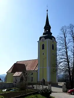 The local parish church, from which the settlement gets its name, is dedicated to Saint Andrew and belongs to the Roman Catholic Diocese of Celje. It was first mentioned in written documents dating to 1229. The core of the current church is Gothic and dates to around 1400. It is built on a small hill in the middle of the settlement and it served as a protective enclosure against Ottoman raids.[6]