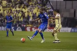 After losing the 2015 Copa Libertadores finals, Gignac debuted in the Apertura 2015 season of Liga MX on 9 August, scoring in a 2–2 draw against Guadalajara at the Estadio Universitario.[76] Six days later, he recorded a hat-trick in a 4–1 home win over Chiapas for the first win of the season for the Nuevo León-based team.[77] He made his debut in the Clásico Regiomontano by scoring the second goal of the 3–1 home victory over arch-rival Monterrey on 19 September.[78] Gignac's 11 goals contributed to the team reaching the championship stage, in which he scored in each leg of a 3–1 aggregate win over Chiapas in the quarter-finals. He repeated the feat in the 4–4 draw against Pumas in the final, also converting his attempt as they won in a penalty shootout.[79]