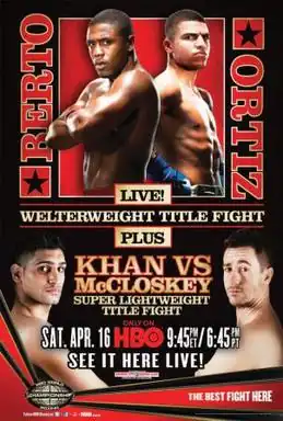 - ^ Satterfield, Lem (2011-01-19). "Andre Berto-Victor Ortiz 'Promising' for Amir Khan April 16 Card". AolNews. Archived from the original on 2012-10-06. Retrieved 2011-03-26.