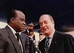 In the August 1992 presidential election, Milongo ran as a presidential candidate, placing fourth with 10.18% of the vote.[14] He received his strongest support in Brazzaville and Pool Region, with 21.6% and 16.5% respectively.[3] The transitional period ended with the swearing-in of the election winner, Pascal Lissouba, on 31 August 1992.[15][16]