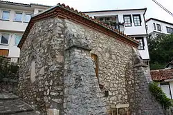 Gropa also minted coins,[15] findings dating to c. 1377 – c. 1385,[16] inscribed in Old Serbian with his title as župan and gospodar, with his signature as "Po milosti Božijoj župan Gropa".[13] He was the last Christian ruler of Ohrid before the Ottoman conquest.[17] His signature is found in the scriptorium of the Church of St. Sofia in Ohrid.[18]