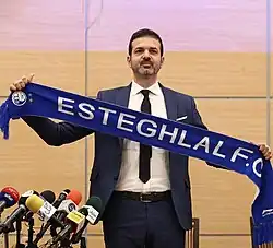 On 13 June 2019, Stramaccioni was appointed as coach of Iranian club Esteghlal, signing a two-year contract.[25] He later revealed in an interview that after having a conversation with former Iran national volleyball team coach Julio Velasco, he was convinced to accept a coaching job in Iran.[26] Upon being appointed, Stramaccioni declared that Meysam Teymouri, Farshad Mohammadi Mehr, Armin Sohrabian, Rouhollah Bagheri and Reza Karimi were not part of his plans for the coming season.[27][28] Instead, he requested to sign two former Serie A players, Cheick Diabaté and Hrvoje Milić.[29][30]