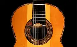 In 1999 after intense study of Catalan lutherie, Tacchi began to make replicas of García and Simplicio Guitars.[14] Concerning the task of creating replicas of guitars by these two masters Tacchi has written: "When I set out to create a homage to maestro García, my state of mind is quite different from the great white canvas ready to be filled with colors that Simplicio represents for me. I feel freer, more tranquil, and more self-confident. Simplicio is more severe. During the period in which I was assiduously studying his work I dreamed of him often and I always felt intimidated and embarrassed before him."[15]
