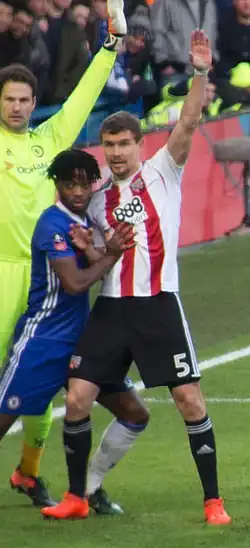Bjelland deputised for the absent Harlee Dean early in the 2017–18 season scored his first Brentford goal in a 4–3 defeat to Nottingham Forest 12 August 2017.[25] After Dean's departure at the end of the summer transfer window,[26] Bjelland continued as an automatic pick for the remainder of the 2017–18 season.[25] Despite suffering from an achilles problem during the final two months of the season,[27] Bjelland finished the campaign with 35 appearances and one goal.[25] After failing to agree a new contract, he was released on 30 June 2018.[28] During three seasons at Griffin Park, Bjelland made 65 appearances and scored one goal.[2]