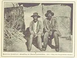 Under his leadership the clan regained its former fame in trade and cattle theft. He opposed the settlement of South African farmers, threatening to chase them away by force. Those Trekboere were in search of political independence from British occupation of the Cape Colony and had ventured into his community's area during their Dorsland Trek.[3][4] Lambert also won a battle against a Tswana regiment around 1884, using his advantage of having firearms and horses. From that time on the Kaiǀkhauan controlled important trade routes, waylaying and robbing trade treks, and were considered a very powerful and dangerous force in Damaraland and Namaland. Andreas Lambert went as far as speaking on behalf of all Namibian people.[2]