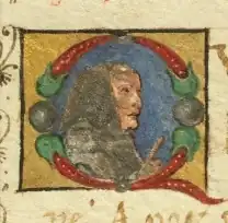 ![]() Miniature depicting Andreas Pannonius (Libellus de virtutibus Matthiae Corvino dedicatus, 1467) | |