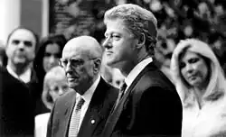 Papandreou died on 23 June 1996.[20] The government declared four days of national mourning,[21] and at his funeral procession produced crowds of "hundreds of thousands".[22] His will shocked the public because he left everything to his 41-year-old third wife and left nothing to his family by the second wife, whom he married for 38 years, and their four children, or the illegitimate Swedish daughter.[18]