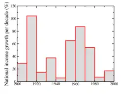 In domestic affairs, Papandreou's government carried out a series of wealth redistribution policies upon coming into office that immediately increased the availability of entitlement aid to the unemployed and lower wage earners. Public spending on pensions nearly doubled from 5.8% in 1980 to 10.7% in 1985,[109] manufacturing workers acquired a salary increase of 10%,[110] and the minimum wage increased by 32% overnight in 1982.[111] The share of gross national product devoted to social welfare, social insurance, and health was significantly increased.[112] The government made credit more accessible, provided a variety of handouts to various groups, and introduced a wage indexation system protecting (particularly low) wage earners' salaries from the erosion of high inflation, which was around 20% in the early 80s.[108][113] Changes were made to labor laws, which, until 1984, made it difficult for employers to make workers redundant. A number of other reforms were carried out in areas such as the protection of union and protest rights. A national system against unemployment was set up that granted benefits to young people and elderly unemployed persons. In addition, Law 1545/85 extended unemployment benefit duration for certain groups of people while relaxing entitlement to unemployment benefit.[114] From 1982 to 1985, public consumption and public investment grew on average by 7% and 10%, respectively.[115]