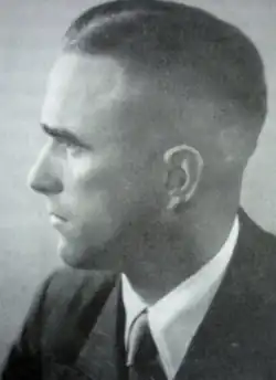 After finishing elementary school, he attended Stephan Ludwig Roth Gymnasium in Mediasch from 1923 to 1929.[5] However, due to his poor grades at Stephan Ludwig and his failure to graduate with his abitur, he had to attend St. Vasile Gymnasium in Blasendorf from 1929 to 1930.[1] During his time at Vasile, he was described by a classmate as "a less talented young man with shabby clothes who had swapped the Gymnasium in Mediasch for the one in Blasendorf because he had repeatedly failed in Mediasch."[1] After graduating from Vasile, he attended Babeș-Bolyai University in Cluj-Napoca studying law, but he did not graduate.[2] He then volunteered for the Romanian Army.[6] He was a cavalryman in the army together with Andreas Rührig, his later chief of staff.[1] He also made his first political contacts during this time in 1930 when he was working at the voluntary labor camps eventually, in 1932, becoming camp commander.[7] He spent, around 1933, some time with Richard Langer in Cincu, who was close to the Artaman League and the German People's Party in Romania.[8]