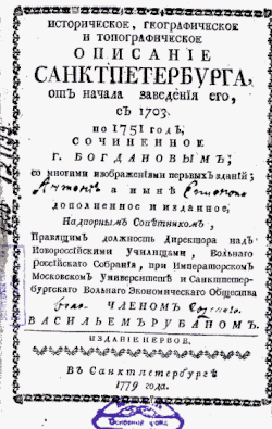 - ^ "Описание С.-Петербурга (1779 год)". Bibliohronika (in Russian). Retrieved 2019-07-31.