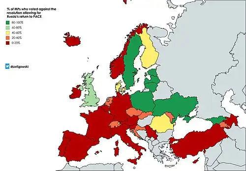- ^ Rankin, Jennifer (2019-05-17). "Council of Europe votes to maintain Russia's membership". The Guardian. ISSN 0261-3077. Retrieved 2024-02-26.