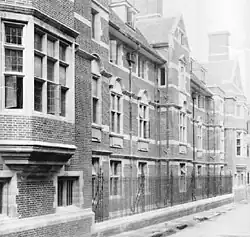 The foundation-stone was laid for the Queen by Sir John Wenlock, her chamberlain, on 15 April 1448, and the quadrangle was approaching completion when the outbreak of the Wars of the Roses put a temporary stop to the undertaking. Later Duckett became a Yorkist, and persuaded the new Queen Elizabeth Woodville to support the college. The prosperity of the college was due to her influence with her husband, and she gave it the first statutes in 1475; the college was henceforth known as ‘Queens' College,’ in the plural.