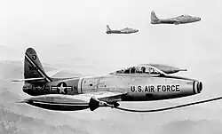 In June 1952, Colonel Evans was appointed as the deputy commander of the 49th Fighter-Bomber Wing during the Korean War. Stationed at Taegu Air Base, South Korea, he flew missions in the F-84 Thunderjet. On his 67th mission on March 27, 1953, he was shot down and was held as a prisoner of war by communist forces, making him the highest ranking Air Force prisoner of the war.[3] During his time as prisoner, he was held in solitary confinement and, after his captors discovered through the Stars and Stripes military newspaper that he had served with the USAF Chief of Staff, he was pressured to confess that he committed war crimes. He refused to do so and was subjected to torture. Evans was released from captivity in September 1953; until his release he was considered missing in action by the U.S. military.[1][3][5]