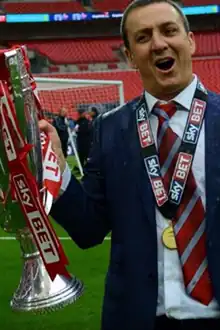 ![]() Pilley in May 2014, when Fleetwood Town won promotion to League One via the play-offs. | |