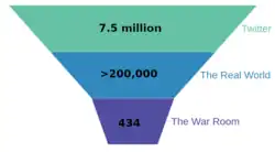 Advertised by Tate and costing $8,000, The War Room is described as "a global network in which exemplars of individualism work to free the modern man from socially induced incarceration", stating it teaches men "physical, mental, emotional, spiritual, and financial development".[72] A senior member of the group, Miles Sonkin, also known as Iggy Semmelweiss,[73] is the supposed leader of the group according to a BBC investigation. Semmelweiss reportedly met Tate in 2018, with the group established in 2019.[20] The investigation in August 2023 led by Matt Shea documented evidence of women groomed into online sex work by members of the group,[20] described as an all-male secretive society.[51]
