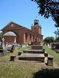 On 1 January 1810 Lachlan Macquarie became the 5th NSW governor and on 14 January 1810 he appointed Andrew Thompson to be a justice of the peace and magistrate for the Hawkesbury district; the first ex-convict to assume that post. Andrew became a personal friend of Lachlan and Elizabeth Macquarie, and was regularly invited to Government House to dine with them. But Thompson's health had been badly affected by the flood rescues, and on 22 October 1810 he died in Green Hills (Windsor) of respiratory failure, and was buried with great ceremony in the St Matthews Church cemetery.[7][8] On 11 January 1811 the Governor declared that the town square at the centre of Windsor would be named Thompson Square to commemorate his enormous contributions to the town and the district.[9] In July 1813 Lachlan and Elizabeth Macquarie placed a tombstone on Andrew Thompson's grave site with a personal inscription.