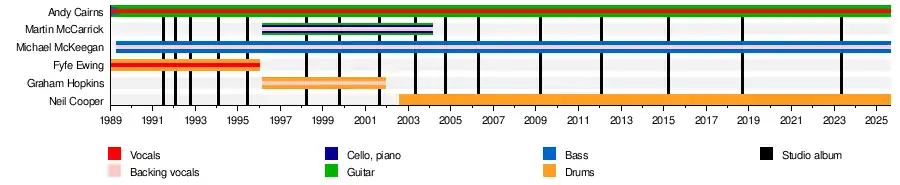 - Fyfe Ewing – drums, backing and lead vocals (1989–1996)