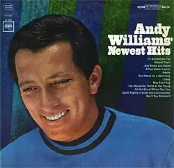 Andy Williams' Newest Hits is a compilation album by American pop singer Andy Williams that was released early in 1966 by Columbia Records[4] and was the first LP to compile the singer's Columbia material. Seven of the 12 tracks had reached the charts in Billboard magazine, and another had been released as a single in the UK. Three album cuts were also included along with a recent B-side.