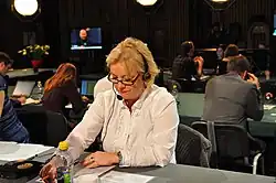 Anette Hoff (born 16 May 1961) is a Norwegian actress. She has played hotel manager Juni Anker-Hansen in Hotel Cæsar since 1998. In autumn 2005, spring 2010 and autumn 2011 she took breaks to play on stage.[1][2] During the 2010 break, she left the show in April 2010 (on TV) and returned in December 2010. Hoff is as of 2020 the longest serving television soap opera actor in Norway.