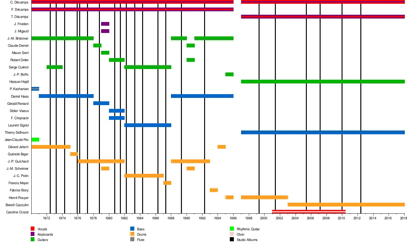 - Christian Décamps - Lead vocals, Keyboards (after 1970)