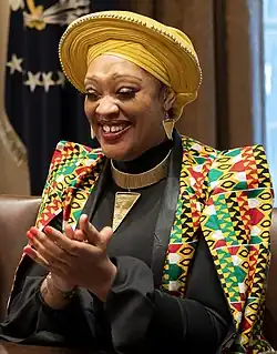 Angela Stanton-King (born February 19, 1977) is an American author, television personality and conservative speaker based in Atlanta, Georgia.[1] She spent two years in prison for conspiracy and was later pardoned by President Donald Trump a decade after serving her sentence. She subsequently became a media personality and was a main cast member on the third season of the BET docuseries From the Bottom Up. She was the Republican candidate for Georgia's 5th congressional district in the 2020 election, losing to Democratic candidate Nikema Williams.[2] Stanton-King has shown support for QAnon, which espouses a number of far-right conspiracy theories.[3][4]