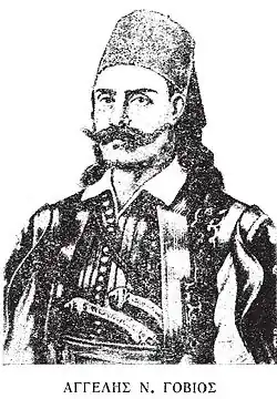 Angelis Govios was born in about 1780 in Limni, Euboea.[2] According to the oral tradition of Limni, Angelis real surname was Tzoutzas or Tzotzas. "Govios" was a nickname.[3] Along with Odysseas Androutsos, Athanasios Diakos and other leaders of the Greek Revolution of 1821, he served in the garrison of Ali Pasha. His participation in the battle of Gravia made him famous for his bravery and courage.