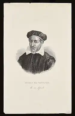 Angelo di Costanzo (c. 1507 – November 1591), Italian historian and poet, was born at Naples around 1507. His great work, Le Istorie del regno di Napoli dal 1250 fino al 1498, first appeared at Naples in 1572, and was the fruit of thirty or forty years labour; but nine more years were devoted to the task before it was issued in its final form at Aquila (1581).[2] It is one of the best known histories of Naples, and the style is distinguished by clearness, simplicity and elegance.[2]