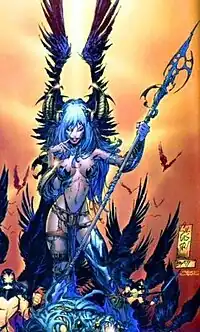 The Angelus is an American comic character featured in publications by Top Cow Productions. Initially appearing in the first lineup of The Darkness in 1997, the Angelus has featured as an antagonist and occasional supporting character in issues of The Darkness and Witchblade.[1][2]