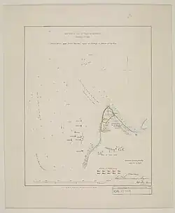 By 28 January, the party was off Basaidu, on the island of Qeshm. Two days later, the French frigate Sibylle commanded by Captain Maisonneuve passed the British ships.[19] The French ship had left Bombay eight days prior on a mission to the Persian Gulf to protect French interests there. On 30 January, the British squadron anchored off of Bushehr around 2:00 PM.[20] The next morning, the British command gave orders to disembark and join the force already stationed at the encampment. With the arrival of the reinforcements, supplies were plentiful in the camp.