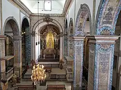 The church of the Convent of St. Francis in now an integral part of the museum. The Igreja de Nossa Senhora da Guia is in a Portuguese architectural style marked by austere forms. It stands close to the site of a small chapel built in the 15th century for the same patron saint by the sailor Afonso Gonçalves Baldaia, one of the first settlers on the island. Built between 1666 and 1672, the current church has three naves. The sacristy, opened to the public in 2018 after restoration, is particularly known for a rosewood chest, attributed to Manoel de Almeyda. The high choir was reserved for the Franciscan friars. The walls are covered in tile panelling from the first half of the 18th century, narrating episodes from the life of Saint Francis, attributed to Valentim de Almeida (1692–1779). The organ was made in 1788 by António Xavier Machado e Cerveira, one of Portugal's leading organ makers.[1][6][8]