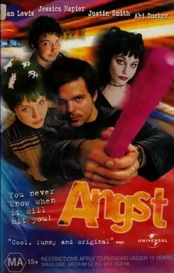 Angst is a 2000 black comedy directed by Daniel Nettheim and starring Sam Lewis, Jessica Napier, Justin Smith and Abi Tucker. It was written by Anthony O'Connor. It was shot in and around Sydney, Australia. The film was released in Australian theatres on 31 August 2000.