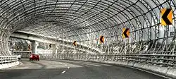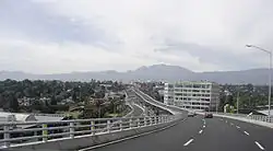 The beltway gained major media attention when the then Mexico City mayor, Andrés Manuel López Obrador, started a project to turn a southern section of the ring into a two-story highway. The second level was finished in 2006 in the Federal District and in the State of Mexico in 2009. From Cuautitlán in the north (State of Mexico) to Naucalpan at the Federal District border the second floor operates as the Viaducto Elevado Bicentenario ("Bicentennial Elevated Viaduct").[2] From the old bullring (Toreo) at the north of the Federal District to San Jerónimo in the southwest the second level is called the Autopista Urbana Norte ("Northern Urban Tollway").[3][4] At San Jerónimo the second level intersects directly with a toll road to Santa Fe, the Supervía Poniente. From San Jerónimo to the intersection with the Calzada de Tlalpan in the south of the city, the second level is called the Autopista Urbana Sur ("Southern Urban Tollway").[5]