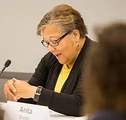 Anita Bonds (born 1945[1]) is an American Democratic politician in Washington, D.C. She is an at-large member of the Council of the District of Columbia.[2] She served as the Chair of the District of Columbia Democratic Party from 2006 to 2018.[3][4] She worked as an executive at Fort Myer Construction, a District contractor.[5]
