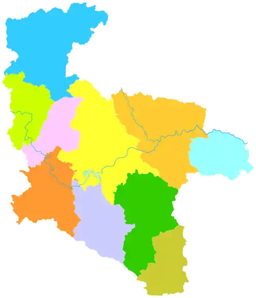 Ankang (Chinese: 安康; pinyin: Ānkāng) is a prefecture-level city in the south of Shaanxi Province in the People's Republic of China, bordering Hubei province to the east, Chongqing municipality to the south, and Sichuan province to the southwest. It covers an area of 23,391 square kilometres (9,031 sq mi) and consists Xunyang, a county-level city, one urban district, and eight counties. Its total population was 2,493,436 people according to the 2020 Chinese census, with 1,244,784 living in urban areas.[1][2]
