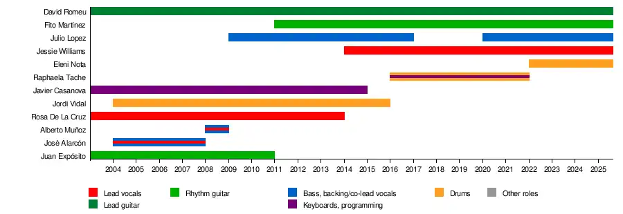 | Past members | José "Jossy" Alarcón Alberto Muñoz Juan "Expo" Expósito Rosa De La Cruz Javier "Rubio" Casanova Jordi Vidal Raphaela Tache |