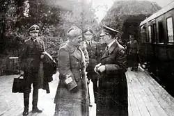 After the headquarters was completed in summer 1941, Hitler first visited on 27 August for a meeting with Mussolini. Both leaders arrived by train. Hitler’s train (German: Führersonderzug) stayed in the bunker at Strzyżów while Mussolini's engine and carriages were at Stępina. The actual meeting to discuss the war with Soviet Russia, which lasted several hours, was held aboard Hitler’s train, which he never left. The next day, his train was the first to depart.[3]